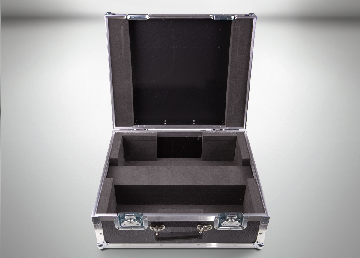 Das ETC Fader Wing 2×20 wird in diesem Flightcase mit Schaumstoff rundum sicher eingefasst.